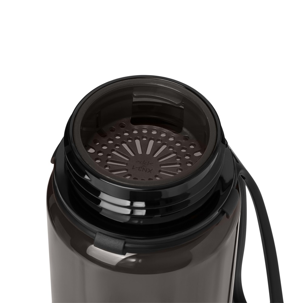 Прочная и легкая, она изготовлена из экологичного пластика без содержания БФА — идеально для тех, кто заботится о здоровье и окружающей среде. Удобная крышка с фиксатором клапана надежно защищает от протекания и случайного открытия, а ремешок-петля удобен для переноски — в спортзале и в повседневных делах.