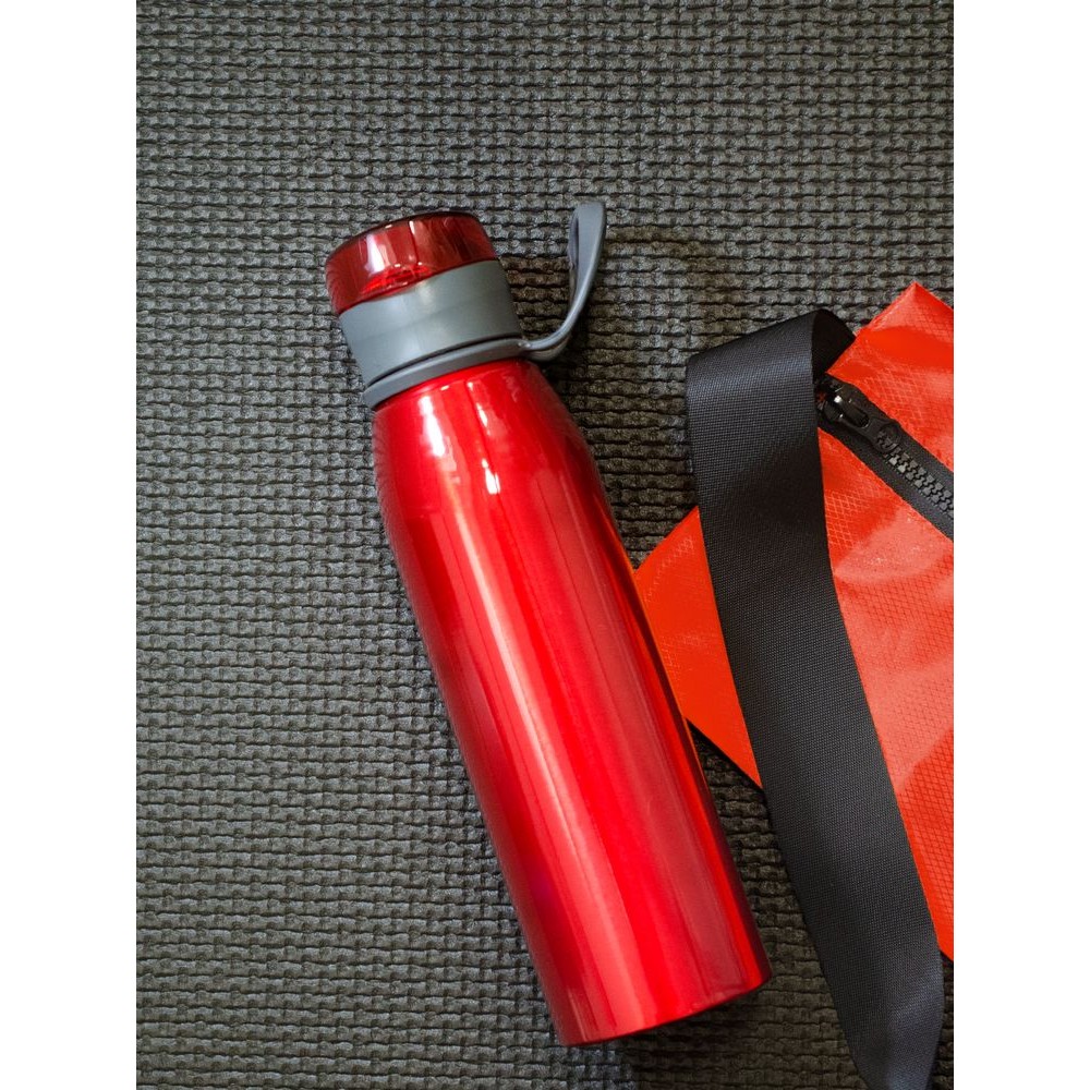 Легкая бутылка для спорта с откидной крышкой и силиконовой петлей для транспортировки.