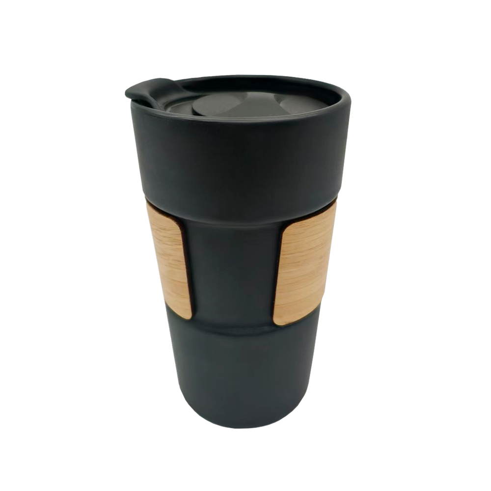 Кружка керамическая с деревянной манжетой Nexus, чёрная