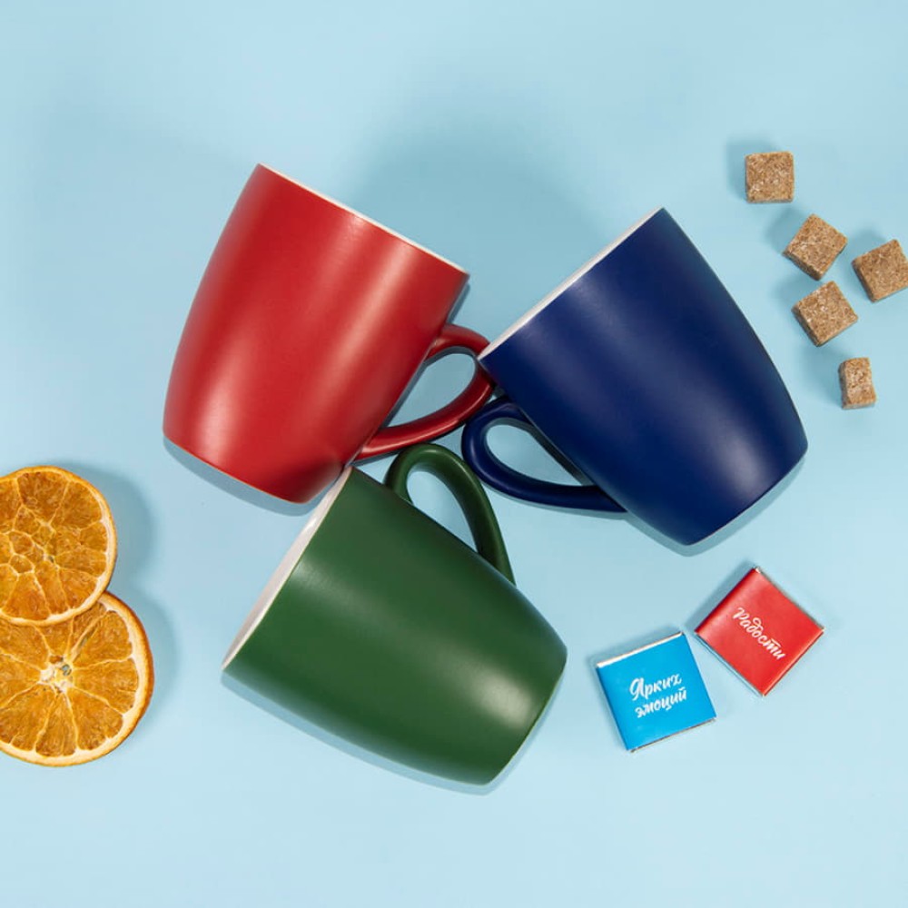 Насыщенный синий, зеленый или красный цвет снаружи и нежно-белый внутри создают единую стильную композицию, делая ароматный чай или бодрящий кофе еще вкуснее.
