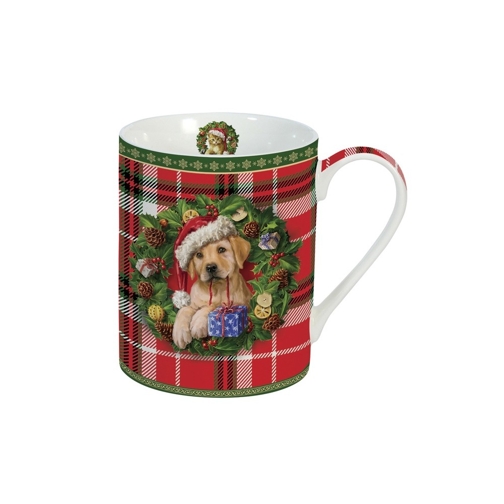 Оригинальная милая кружка с изображением щенка в рождественском колпаке. А внутренняя часть кружки украшена котенком. Цветовая гамма кружки классическая шотландская клетка. Кружка Настоящий друг - трогательный новогодний или рождественский подарок. Кружка изготовлена из фарфора и упакована в подарочную коробку.