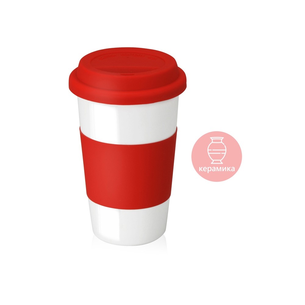 Кружка с силиконовой крышкой и манжетой Нью-Йорк 300мл, красный