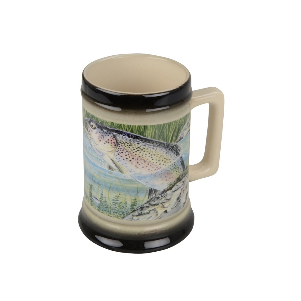 Удобная керамическая кружка украшена изображением рыбы в пруду. Кружка прекрасно подойдет в качестве подарка заядлым рыбакам. Красочное оформление по достоинству оценят любители необычных вещей.