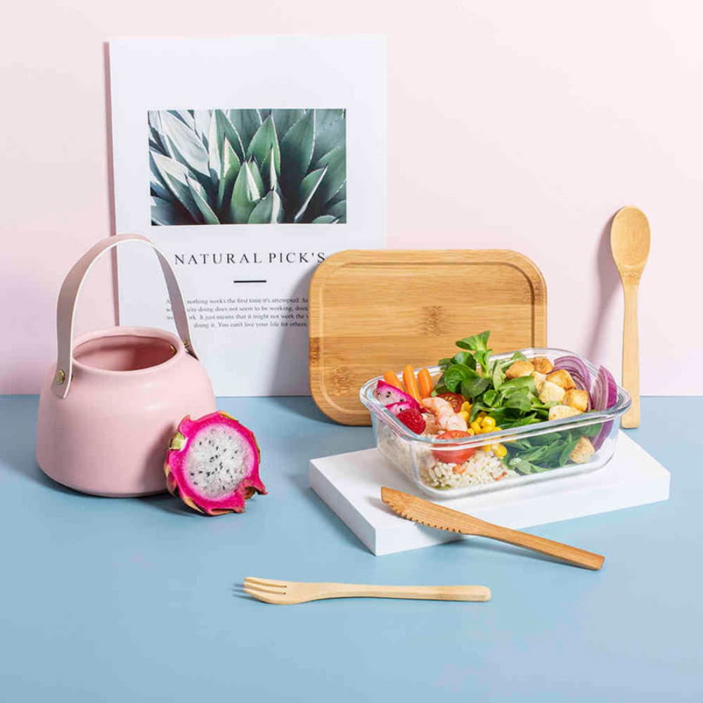 Ланч-бокс BEJAR, ложка, вилка нож в комплекте, стекло/бамбук