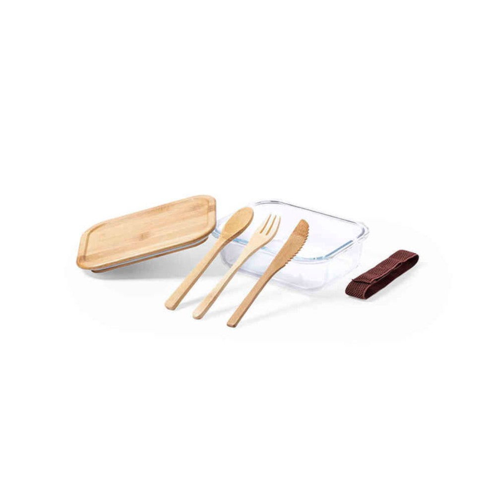 • Ланч-бокс BEJAR, ложка, вилка нож в комплекте, стекло/бамбук