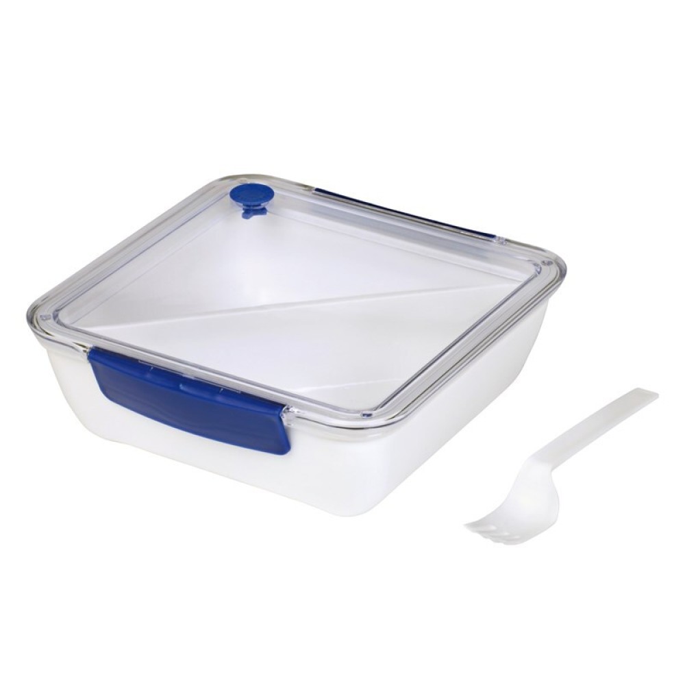 Ланчбокс DELICIOUS с отделением (oк. 400 мл), пластиковой вилкой в наборе, общий объем oк. 1000 мл, в крышке есть клапан для выпуска воздуха, контейнер можно мыть в посудомоечной машине и использовать в микроволновой печи.