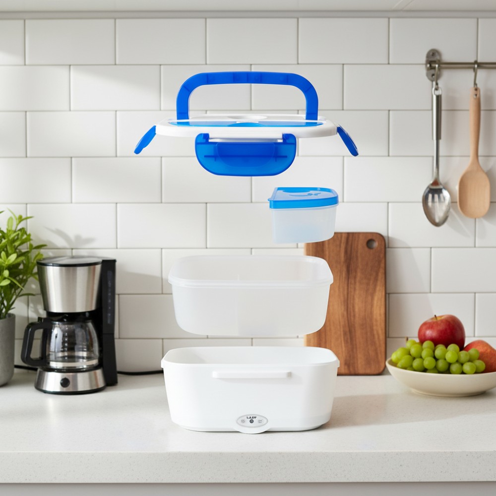 Ланчбокс Yummybox – ваш незаменимый спутник на обеде! Этот инновационный прибор обеспечивает нагрев пищи там, где нет доступа к микроволновой печи. Нагревание происходит по принципу конвекционной (контактной) теплопередачи, то есть - от металлической поверхности внутри ланчбокса. Просто подключите его к электросети, и он сам позаботится о том, чтобы ваша еда была горячей и вкусной. Время нагрева составит 25-30 минут, в зависимости от содержимого контейнера и изначальной температуры продуктов. Не забудьте открыть клапан для выхода пара, который находится на крышке ланчбокса.