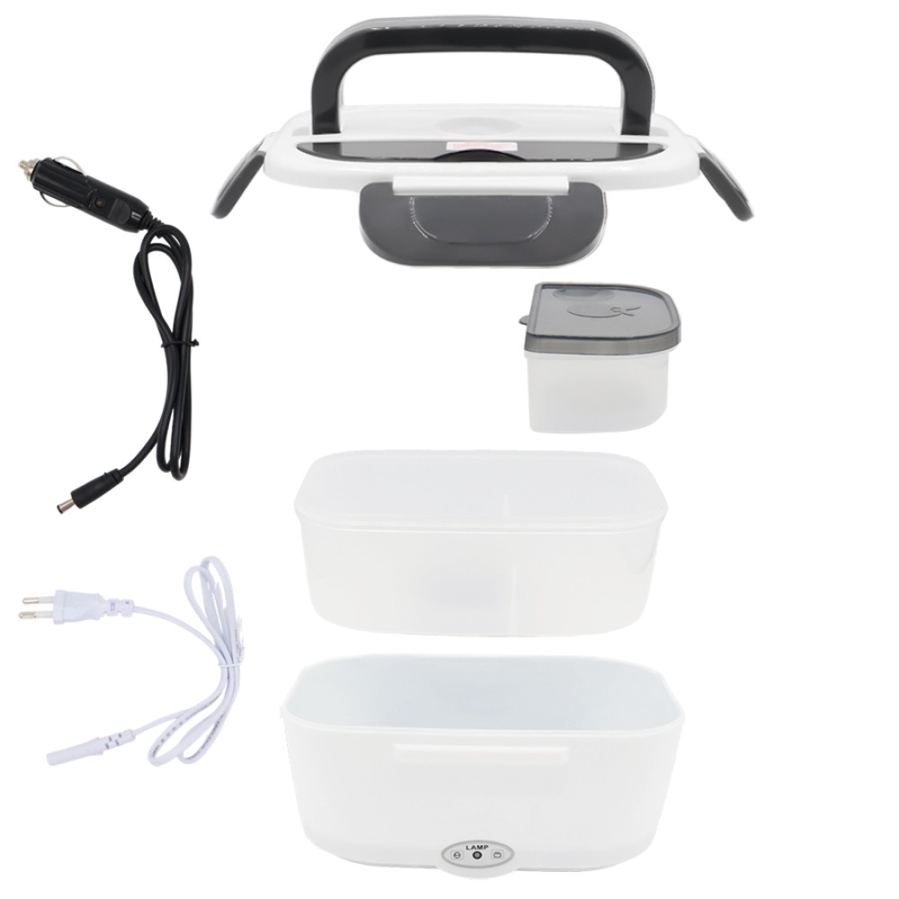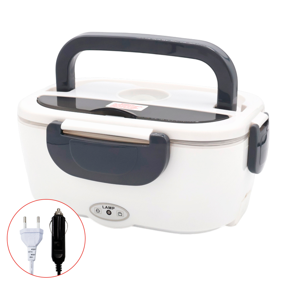 Объём 1500 мл. Два съемных контейнера на 1050 и 450 мл., ложка в комплекте. Мощность подогревателя — 40 Вт. Универсальность ланчбокса заключается в возможности подключения к подогреву как к сети 220 В, так и к автомобильной розетке 12 В/24 В.