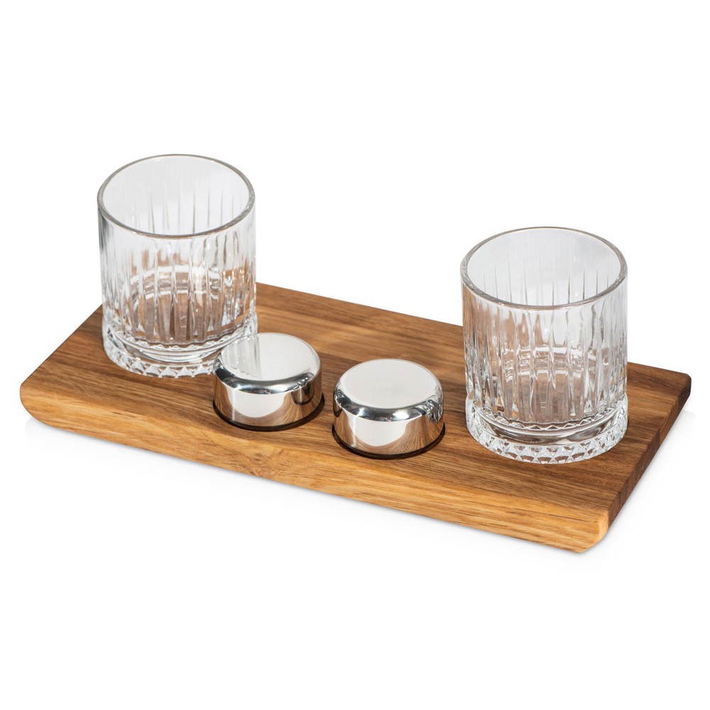 | Вес1214 | Комплектностьдеревянная подставка 28,5 х 12,9 х 2,1 см, бокал 210 мл- 2 шт, шайба для виски d5 х 2,8 см- 2 шт, упаковочная коробка | Материал товарадуб, стекло, нержавеющая сталь, |