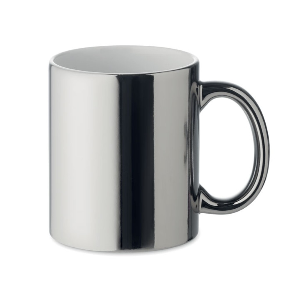 Классическая керамическая кружка цилиндрической формы с металлической отделкой. Объем : 300 мл.
