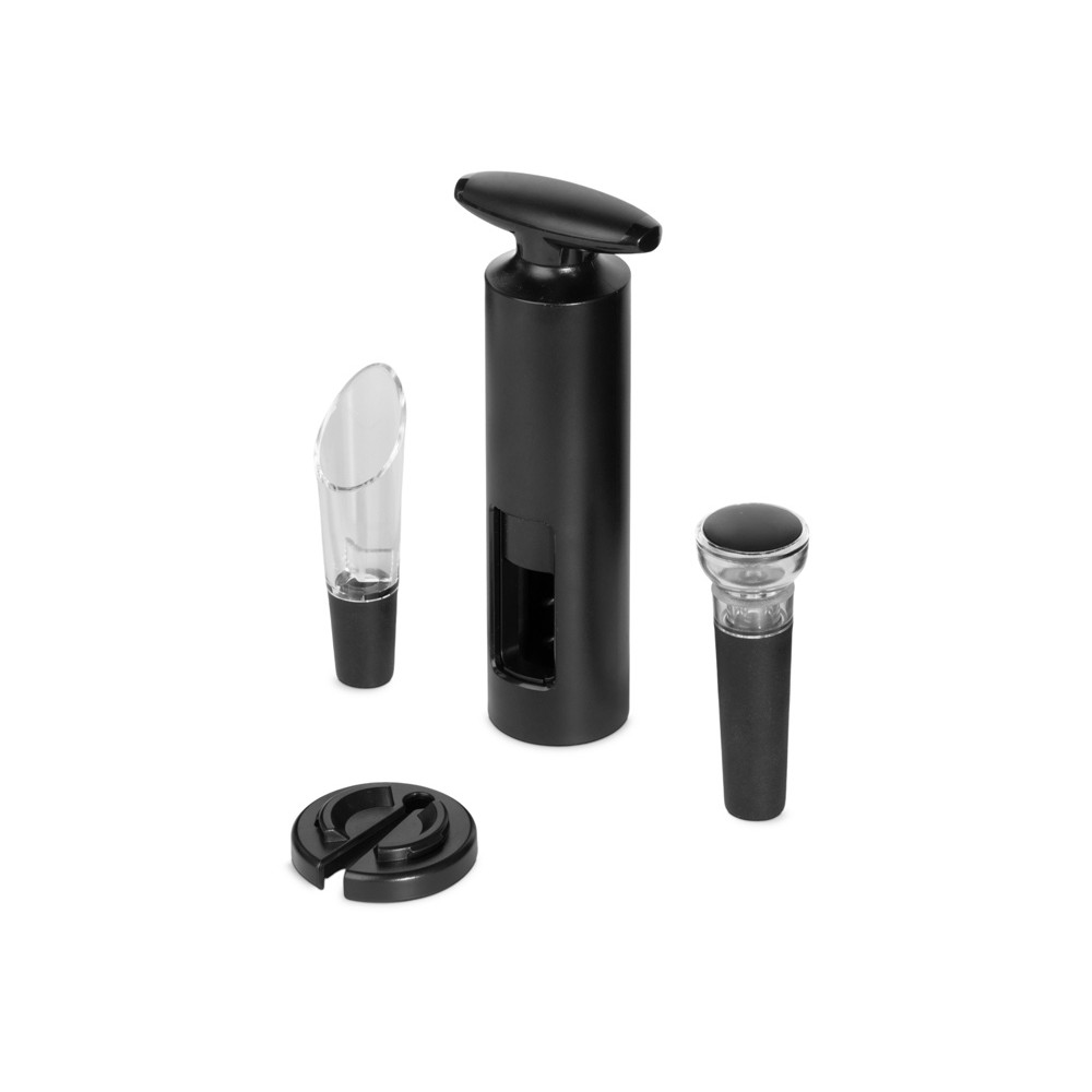 Набор Bergamo - это идеальный вариант на роль бюджетного подарка деловому партнеру, который можно приложить к вину. Подаренный напиток закончится, а брендированный набор останется, напоминая о дарителе. Острая часть штопора спрятана от пользователя в корпусе, что не только защищает пальцы от повреждений, но и обеспечивает спирали долгий срок службы. Нож для фольги может играть роль подставки под штопор — слегка сожмите его края и поместите в нижний паз до щелчка. Для откачивания воздуха из бутылки несколько раз прокачайте пробку вверх-вниз. Аэратор вставьте в горлышко бутылки и пролейте через него вино в бокал - вуаля, вино мгновенно насытилось кислородом, да еще и без одной пролитой на скатерть капли! - оптимальное соотношение цены и качества - в наборе — принадлежности для всех этапов употребления вина - нож для срезания фольги = подставка под штопор