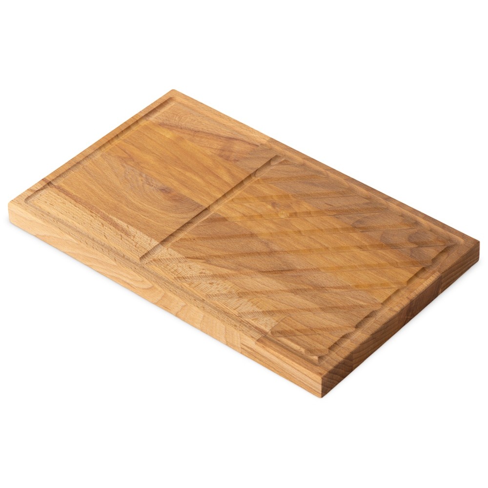 Доска подходит для разделки мяса, овощей и фруктов, бороздки по периметру изделия отводят сок и не дают ему стекать на стол.