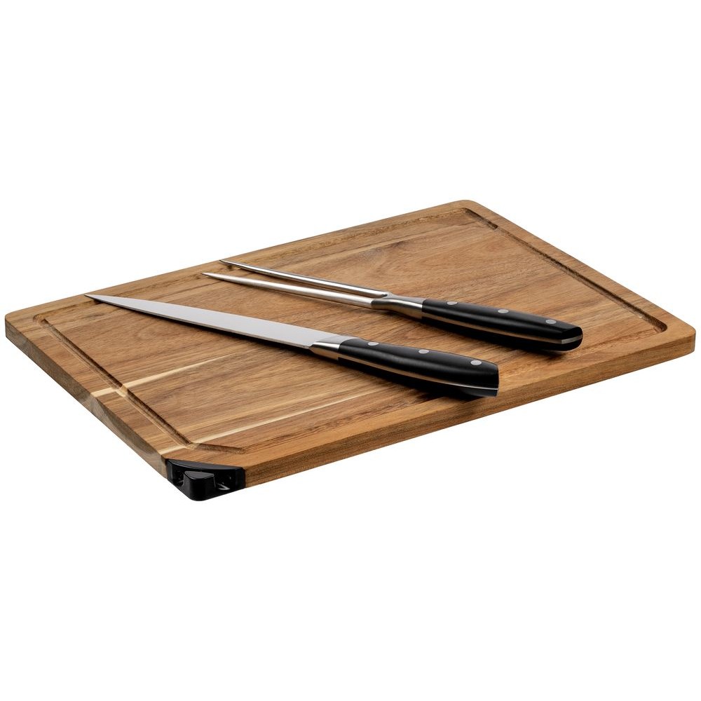 | Материал | доска - дерево, акация; нож, вилка - нержавеющая сталь, 18\\0; ручки ножа и вилки - пластик, АБС |