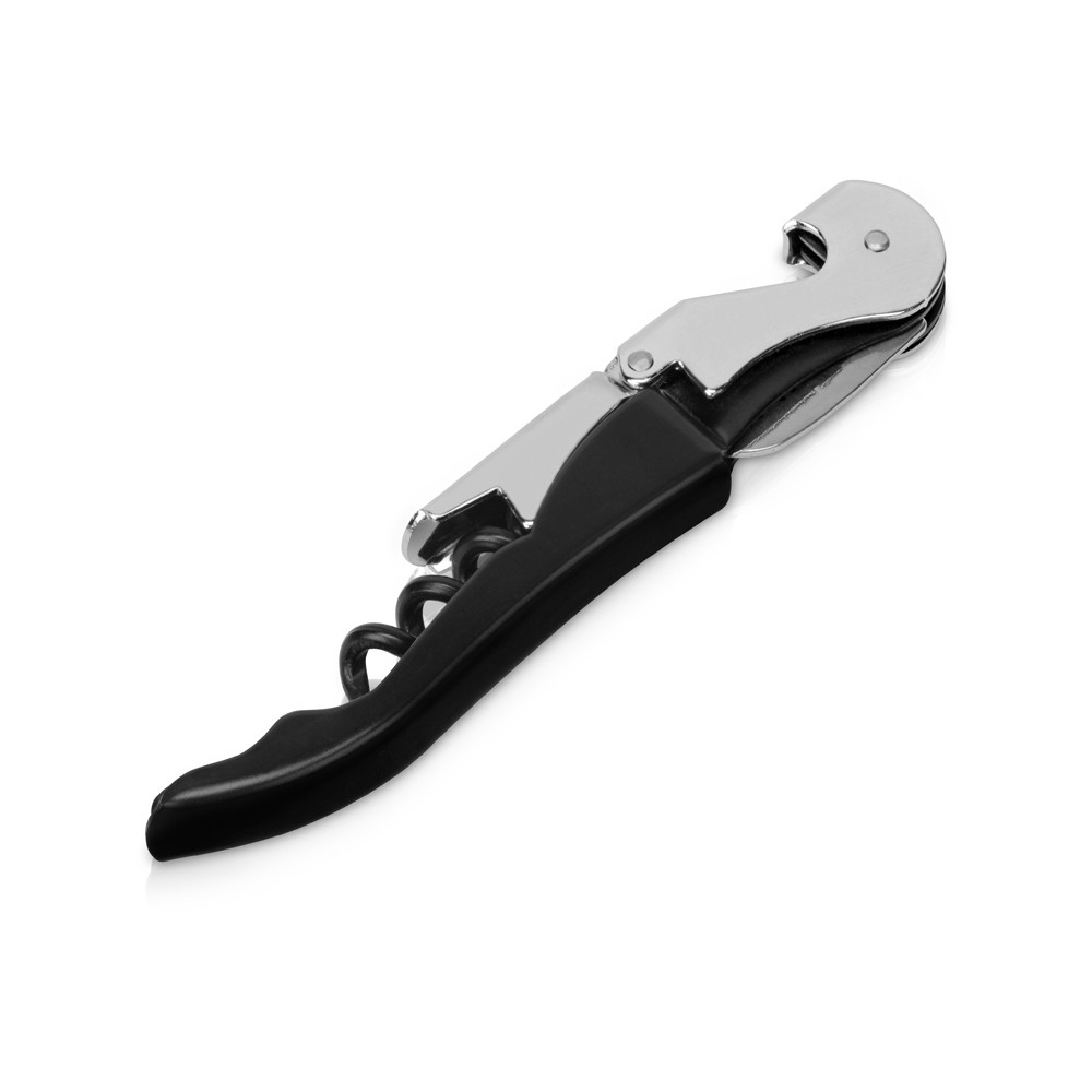 Штопор с буравчиком, открывалкой для бутылок и ножом для срезания фольги. Нержавеющая сталь.