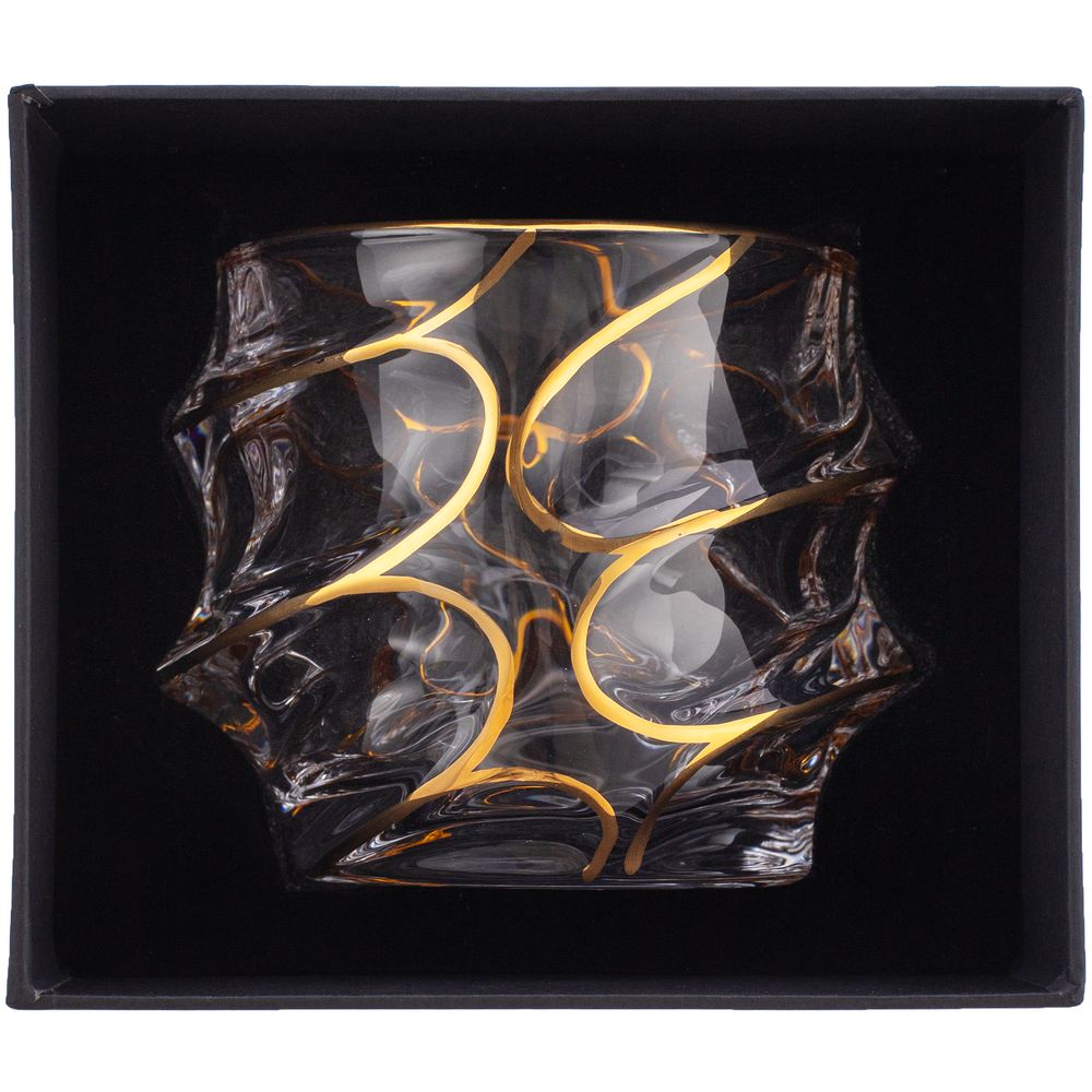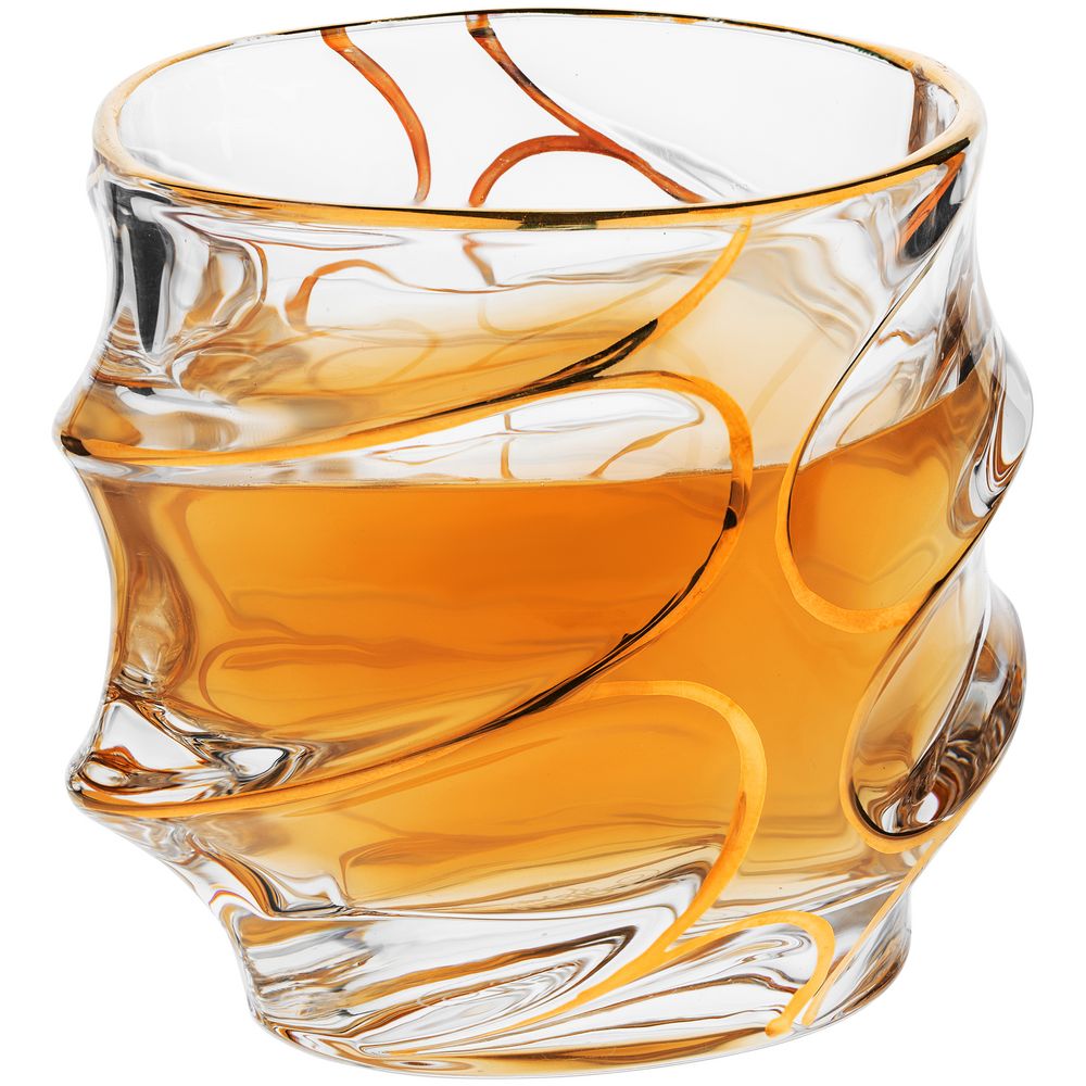 Стакан выполнен из толстого стекла повышенной прозрачности, что позволяет оценить цвет и чистоту крепких алкогольных напитков.Золотистая краска наносится вручную.