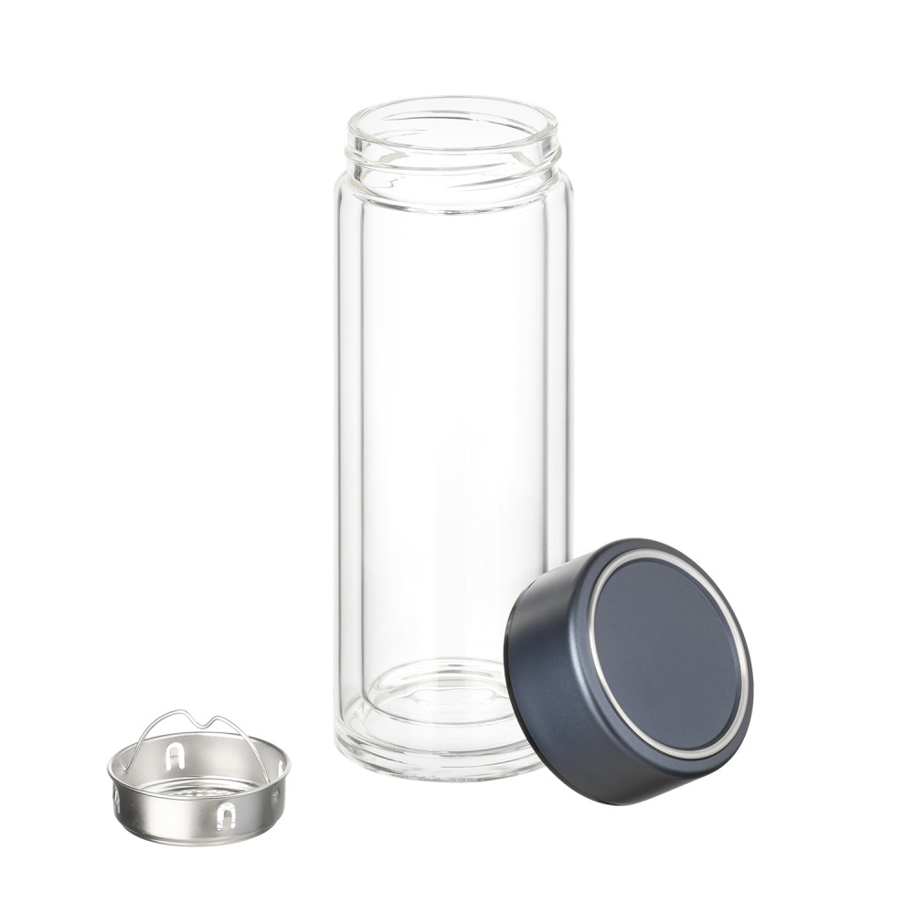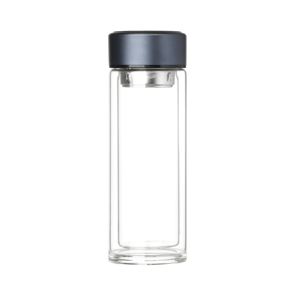 Стеклянная бутылка с двойными стенками позволит носить свежезаваренный чай с собой. Ситечко позволит заварить чай прямо в бутылке.