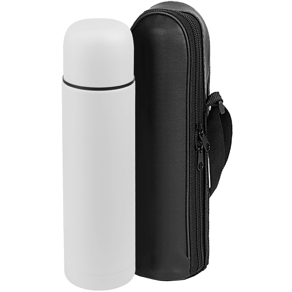Корпус и крышка термоса - металл с порошковым покрытием   Внутренняя стенка - нержавеющая сталь AISI 304;Внешняя стенка - металл с порошковым покрытием; Благодаря двойным стенкам и вакуумной изоляции, колба способна удерживать тепло на протяжении 18 часов. При температуре окружающей среды ~ +25°С Термос поставляется в дорожном чехле из полиуретана (PU).