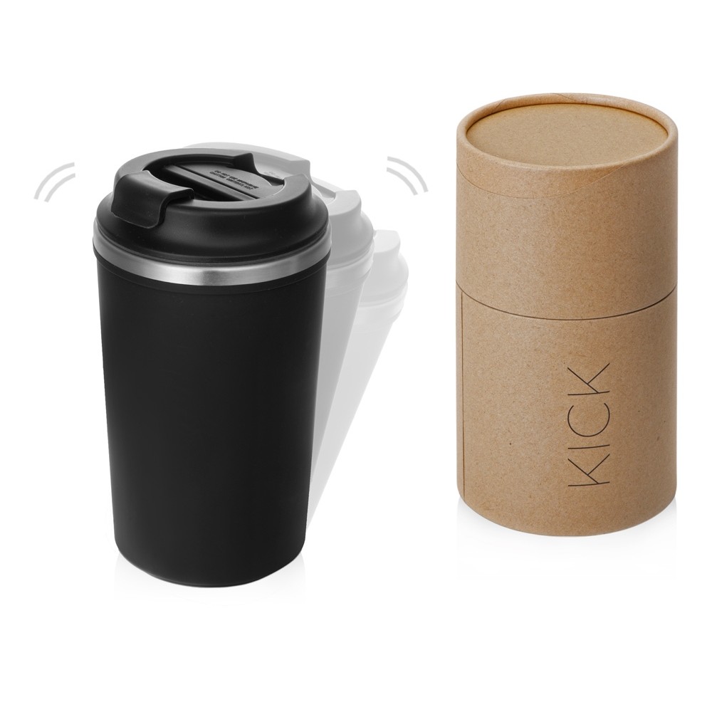 Термокружка Kick отлично подойдет для повседневного использования как на работе, так и дома. Термокружка надежно крепится к столу за счет присоски на дне, что исключает падения при случайном задевании. Чтобы воспользоваться кружкой, ее нужно поднять вертикально. Дополняет конструкцию герметичная крышка с клапаном. Внутренняя колба выполнена из пищевой нержавеющей стали 304 марки, снаружи — пластик с покрытием софт тач. Удерживает тепло около 3.5 часов.