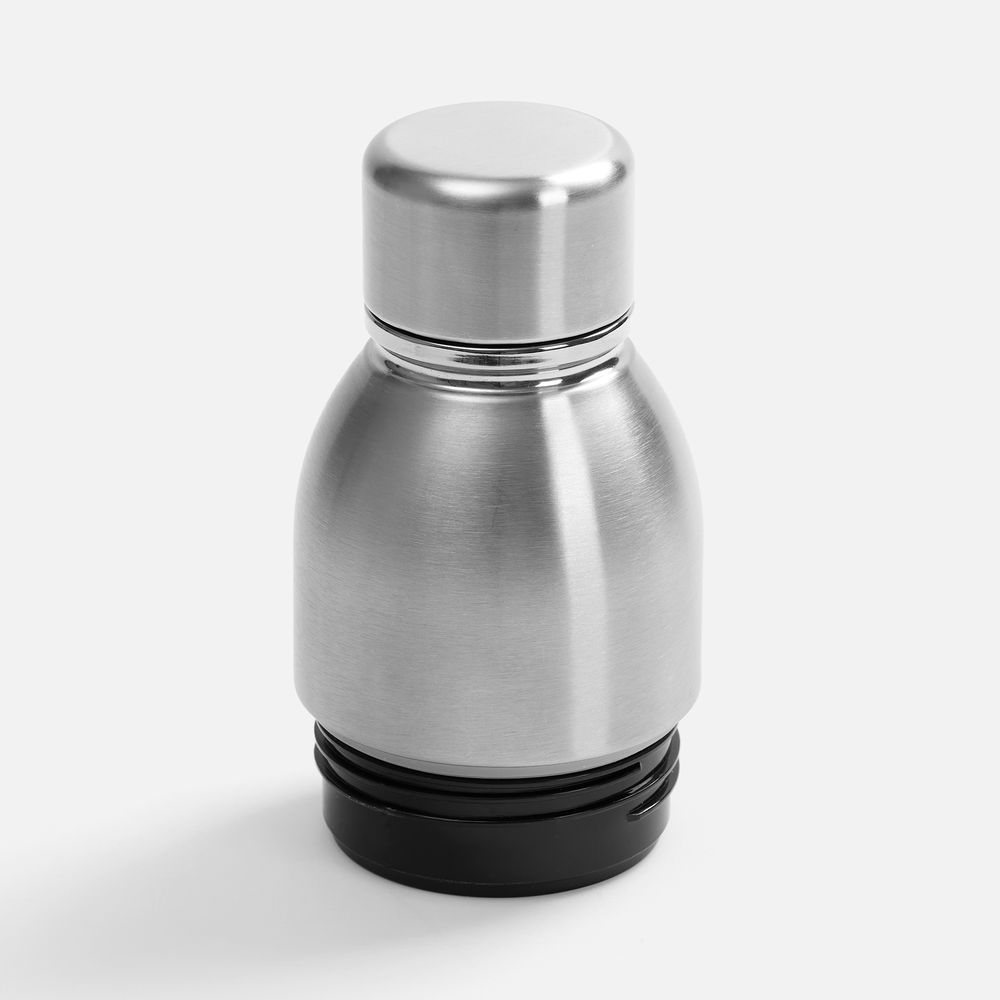 Varianti — это яркий пример посуды с двойной функциональностью. Один и тот же корпус можно превратить как в термостакан для чая и кофе с пластиковой крышкой, так и в термобутылку для прохладительных напитков со стальной крышкой.