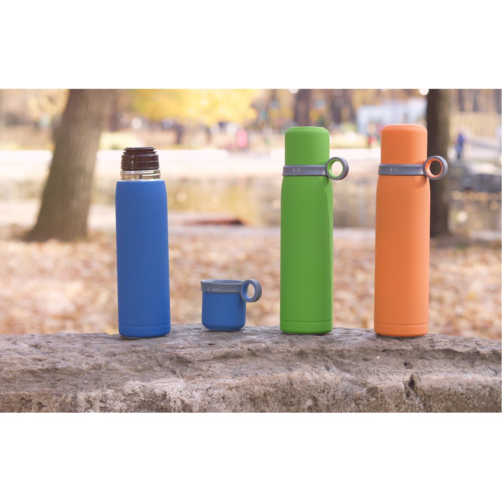 Внешняя стенка термоса изготовлена из нержавеющей стали с уникальным прорезиненным напылением soft-touch, которое эффектно персонализируется по окружности встык. Внутренняя стенка выполнена из высококачественной пищевой, нержавеющей стали.