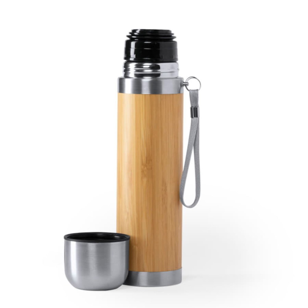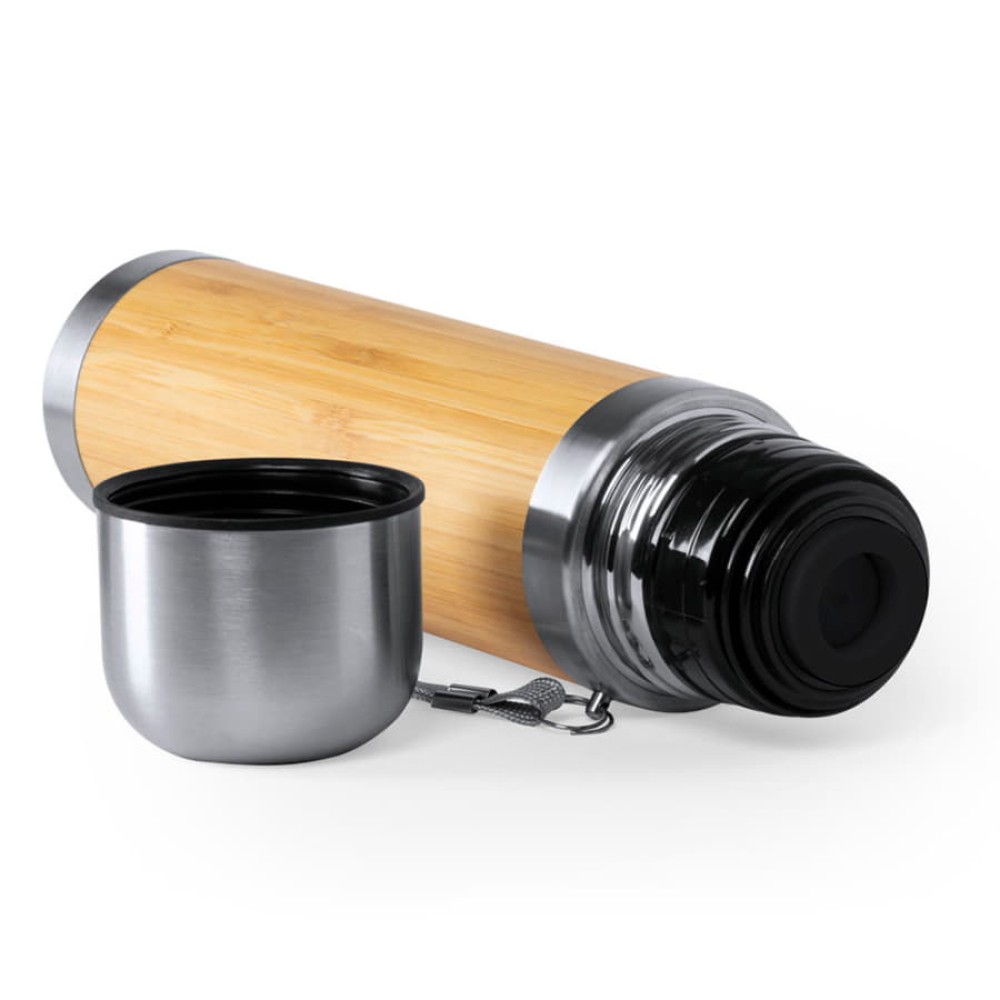 ТермоcTIAKYобъемом 420 млв сочетании материалов из бамбука и нержавеющей стали. Не содержит бисфенола А, двойные стенки для лучшего и длительного сохранения температуры жидкости. Винтовой механизм закрытия, включая крышку / стакан из нержавеющей стали. С ручкой для переноски.Упакован в индивидуальную коробку с эко-дизайном.