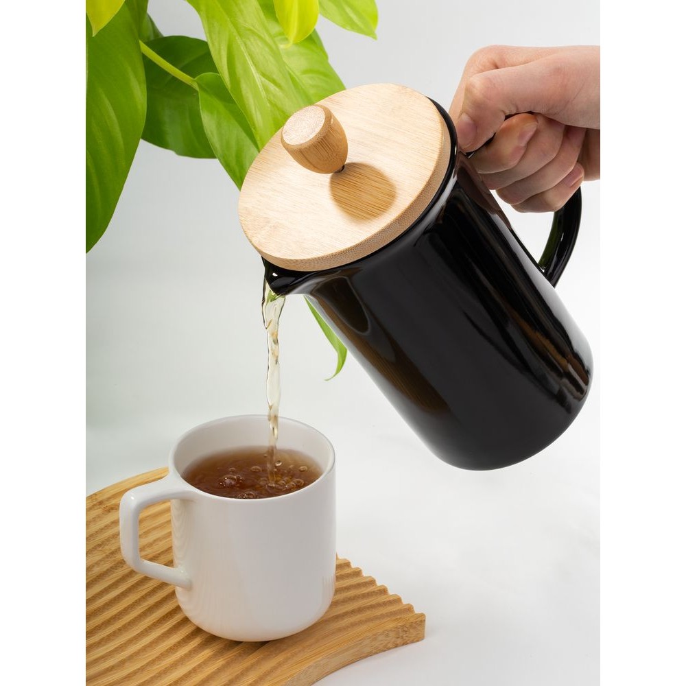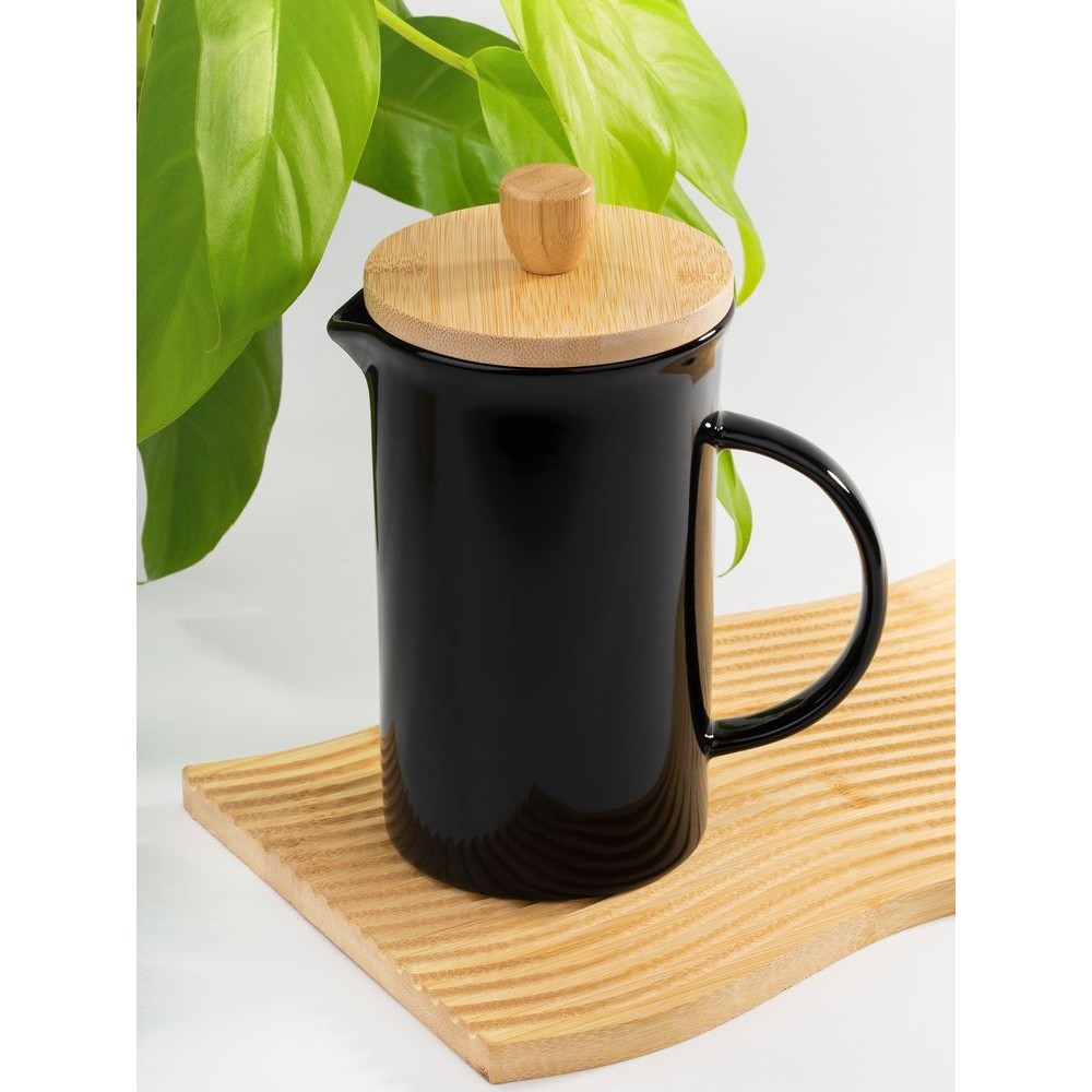 Элегантный керамический френч-пресс Mezzo в глянцевом черном исполнении — функциональный кухонный аксессуар и украшение любого пространства, от уютной домашней кухни до стильного офиса.Емкость 600 мл.