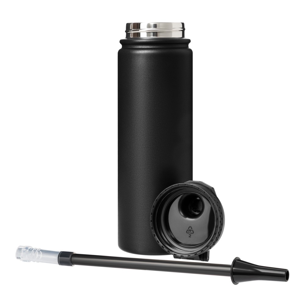 Бутылка оснащена съемной трубочкой. Удобная ручка на крышке облегчает переноску и позволяет прикрепить термобутылку к рюкзаку или сумке.
