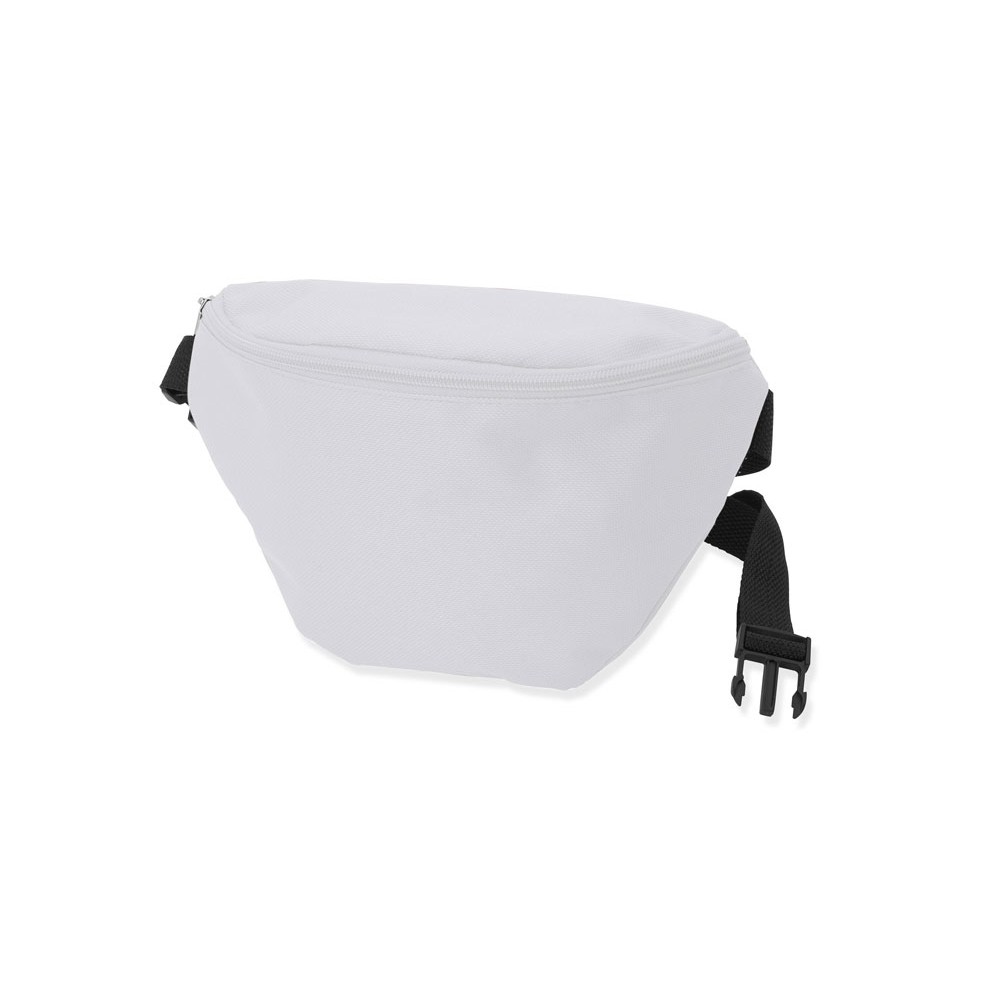 Поясная сумка с передним и задним карманом. Цветные молнии и ручки в тон поясной сумке. Черный ремешок и регулируемая застежка.