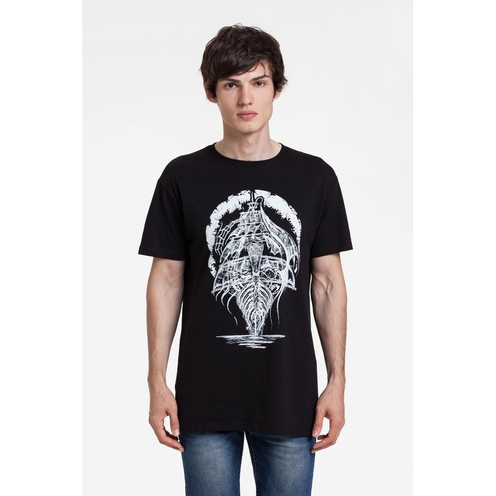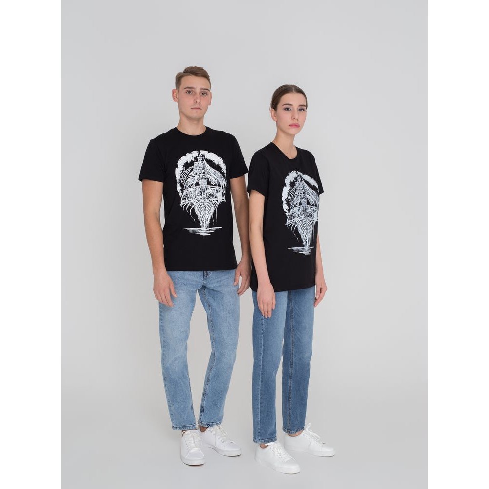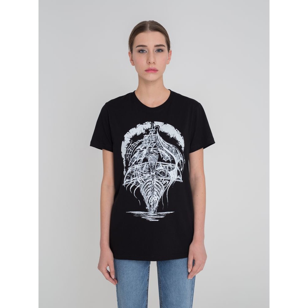 Для моряков появление загадочного «Летучего Голландца» считалось плохим предзнаменованием. Другое дело — одноименный принт, по исполнению напоминающий настоящую старинную гравюру. Только для несуеверных и сильных духом.Бесшовная футболка с круглым вырезом.