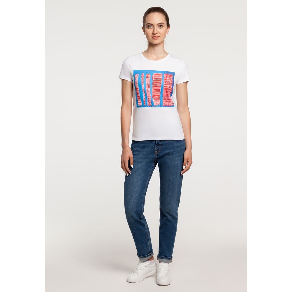 Кроеная футболка приталенного силуэта с круглым вырезом.