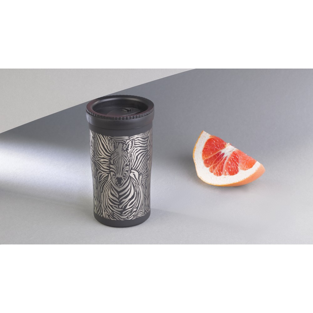 Термостакан в покрытии soft touch с дизайном «Зебра» - интересное сочетание дизайна и практичности.