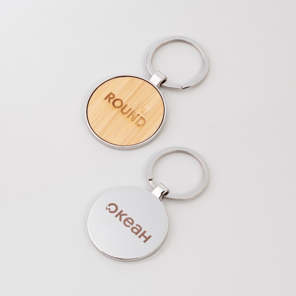 Брелок "Round" - минималистичный дизайн с ноткой эко. Прочный металлический корпус с бамбуковой вставкой, придающей брелоку индивидуальность.