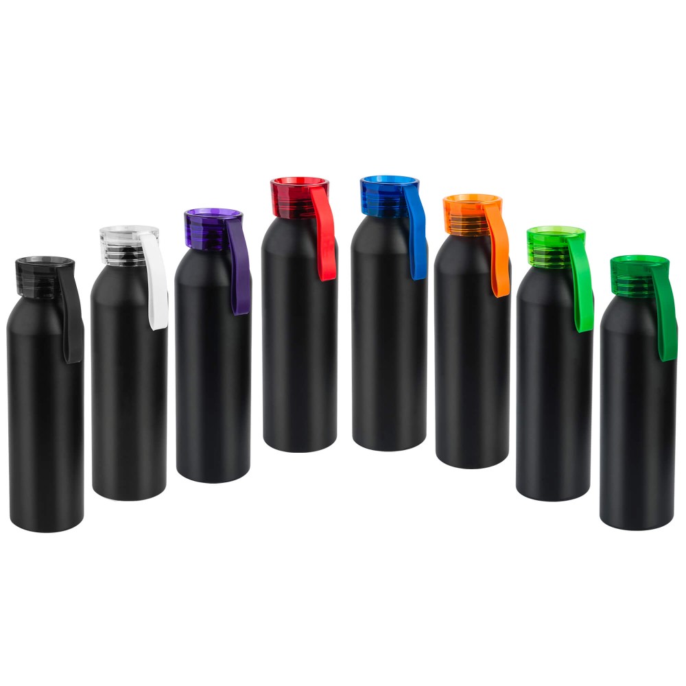 Алюминиевая матовая бутылка с пластиковой крышкой.