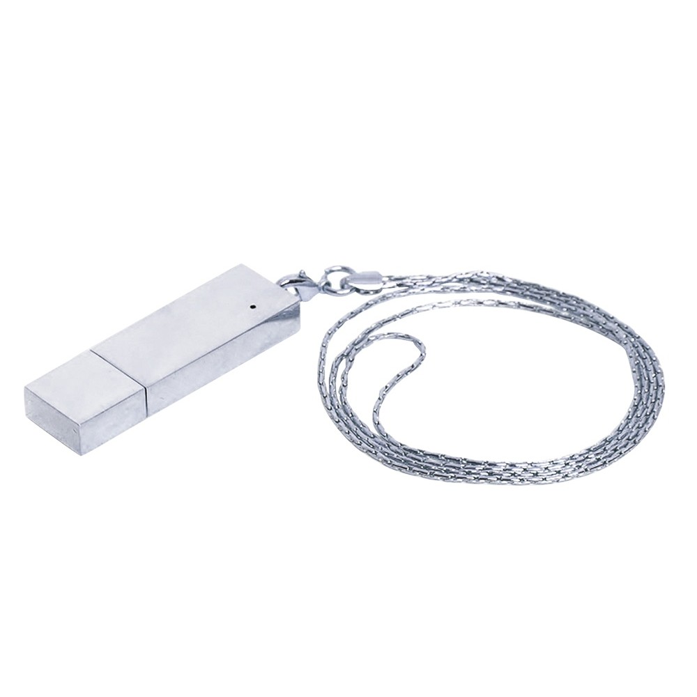 Флеш-накопитель прямоугольной формы в виде металлического слитка, 16 Гб. Металлический корпус. Цепочка в комплекте.