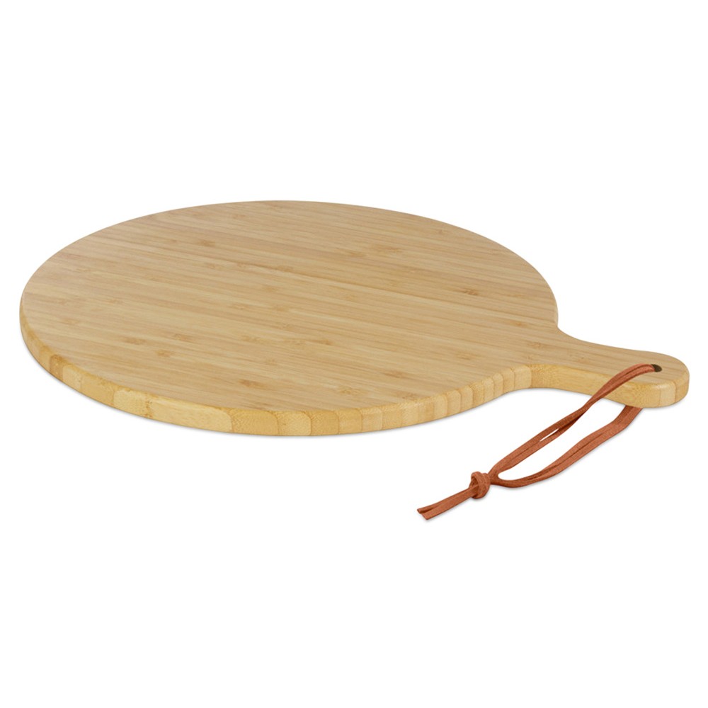 Разделочная доска Delys изготовлена из бамбука и идеально подходит для частных лиц и предприятий, которые предпочитают более экологичные товары. Диаметр доски: 30,5 см. Длина ручки: 8 см. Толщина доски: 1,4 см. Не подходит для микроволновой печи или посудомоечной машины.