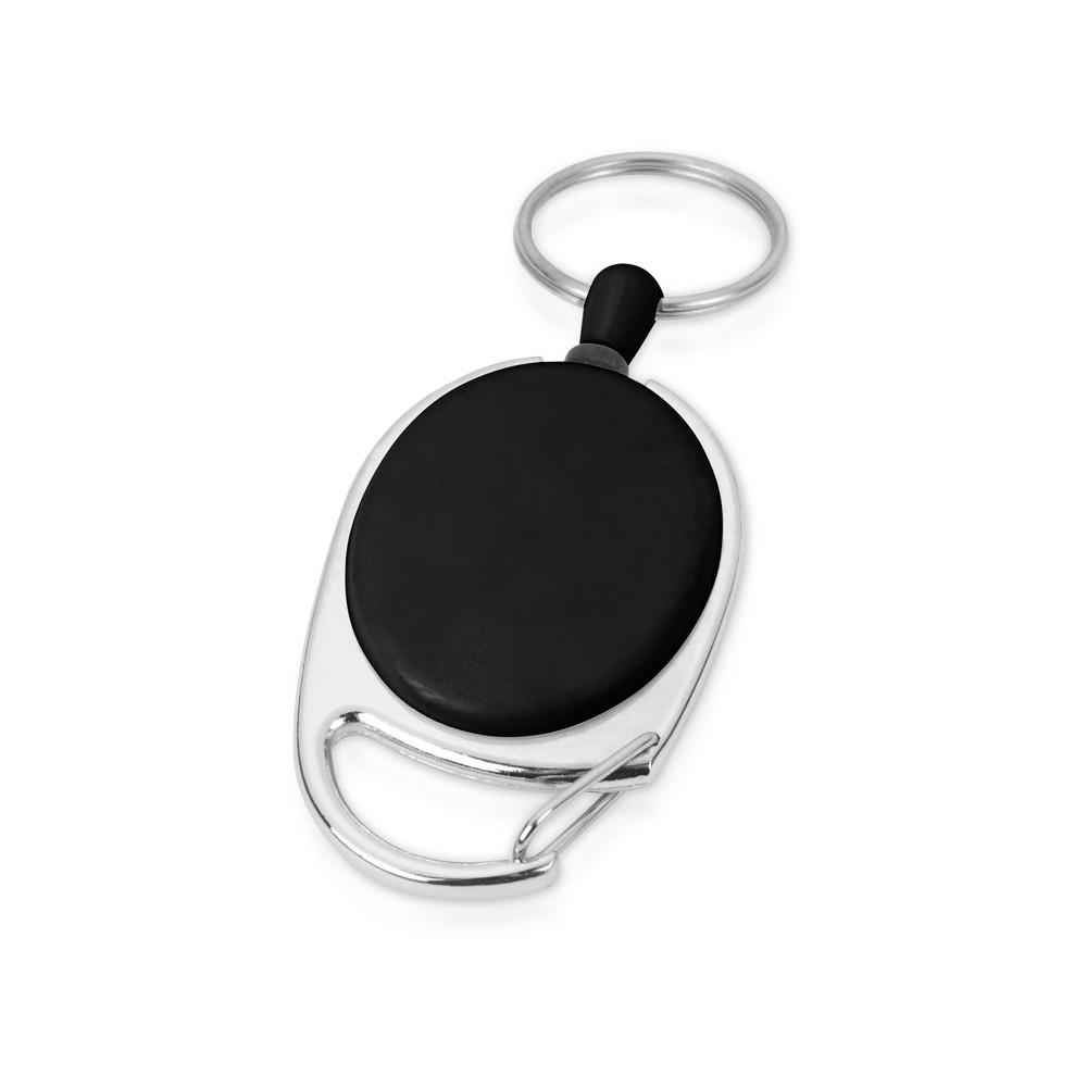 Ретрактор надежно крепится к поясу или другим вещам при помощи металлического карабина. Бейдж или пропуск удобно закрепляется при помощи кольца. Длина шнура - 90 см.