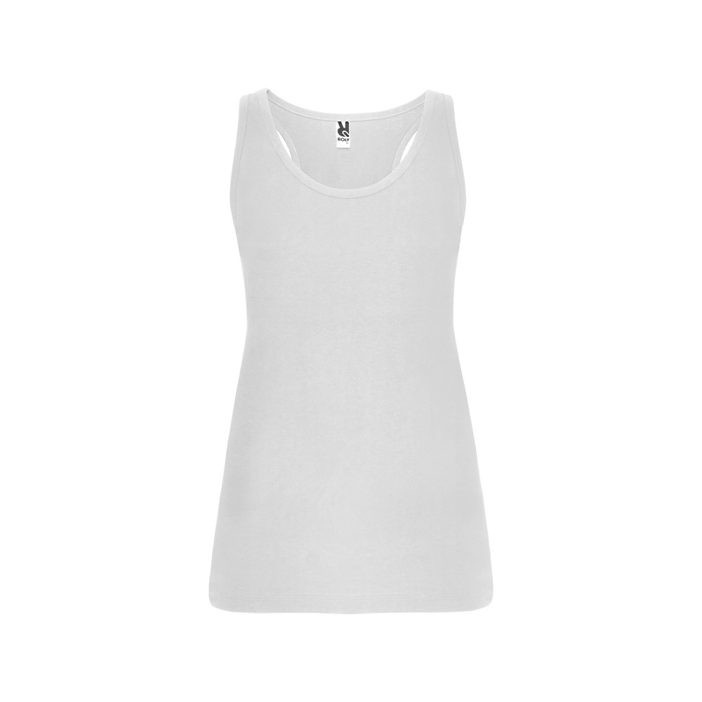 Майка узкого силуэта, горловина и проймы обработаны рибом. Спортивная спинка, боковые швы.