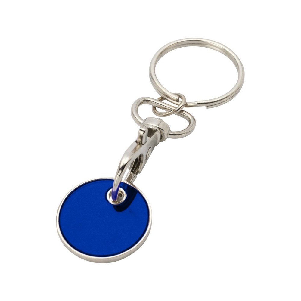 Брелок Rory с цветной монетой для тележки подходит для большинства тележек супермаркетов, позволяя открывать их без монет или жетонов. Цинковый сплав.