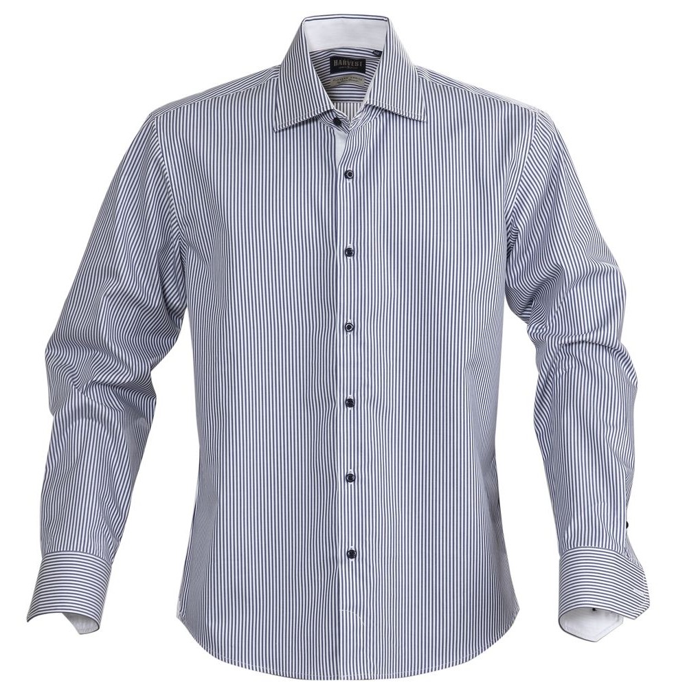 Мужская сорочка современного приталенного кроя из гребенного хлопка качества Easy Care (легко утюжить). Классический узор в полоску с контрастной отделкой оборотной части воротника, изнанки манжет и планки пуговиц. Упрочненные швы воротника и манжет.