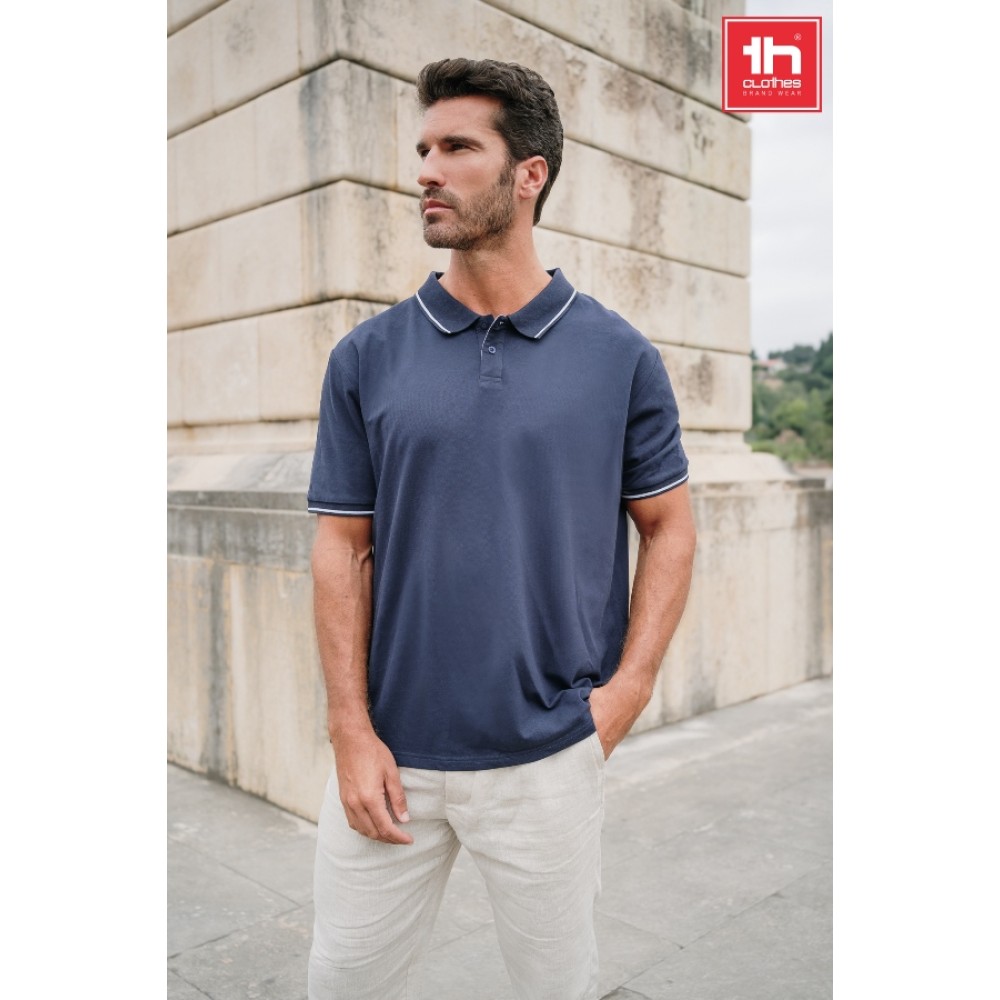 Мужская рубашка-поло из хлопковой ткани-пике.Полотно футболки упругое и гладкоеблагодаря обработке ферментами "enzyme wash" исохраняет форму при стирке.Модель полуприлегающего силуэта. Благодаря манжете из риба 1х1 рукав смотрится очень аккуратно. Воротник также выполнен из риба 1х1, внутри ворота - укрепляющая тесьма по горловине. Манжета на рукавах и край воротника выполнены контрастным цветом. Планка с 3 контрастными пуговицами. Запасная пуговица на ярлыке во внутреннем боковом шве.