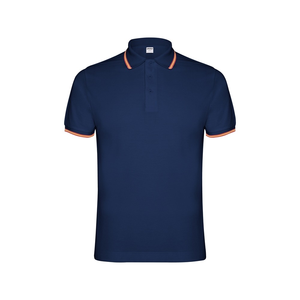 Рубашка поло с коротким рукавом и планкой на 3 пуговицы. Контрастные полоски по манжетам и воротнику. Вышивка в виде флага на спинке