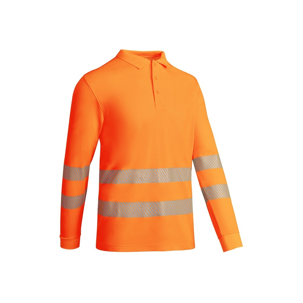Рубашка поло с длинным рукавом и воротником в рубчик 1x1. Планка с застежкой на 3 пуговицы. Две светоотражающие сегментированные полосы на груди и рукавах. Микс полиэстера и хлопка для повышенной воздухопроницаемости. Дополнительный карман.