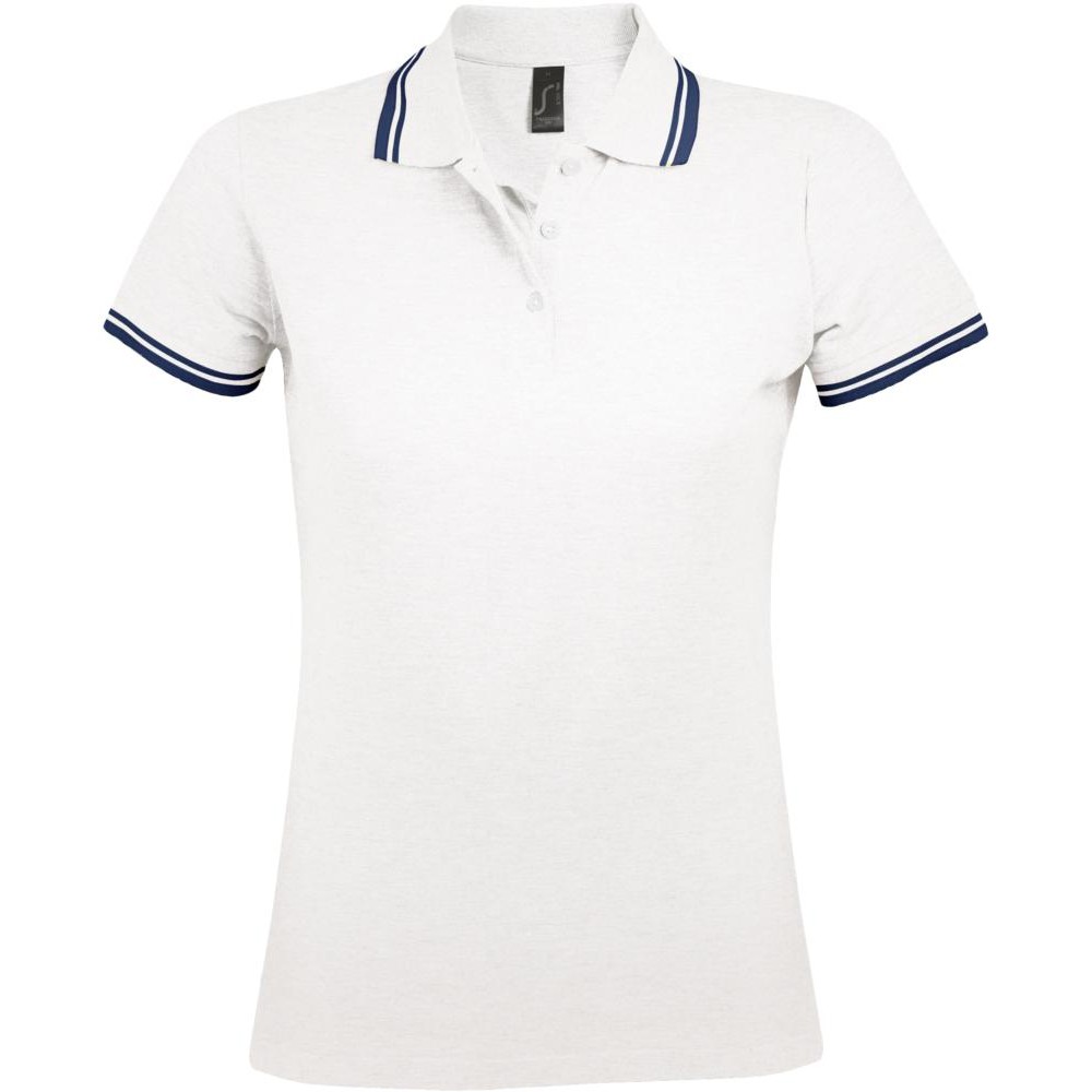 Рубашка поло женская Pasadena Women 200 с контрастной отделкой, белая с синим