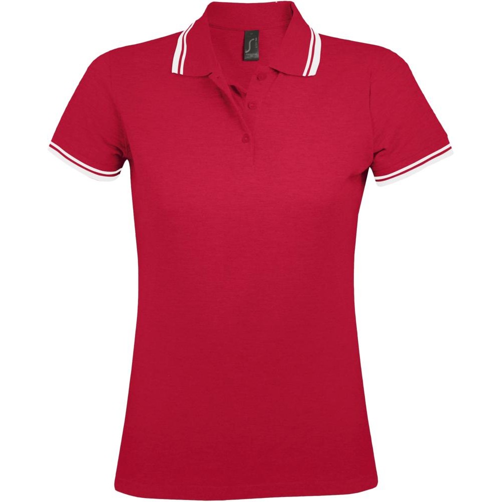 Рубашка поло женская Pasadena Women 200 с контрастной отделкой, красная с белым