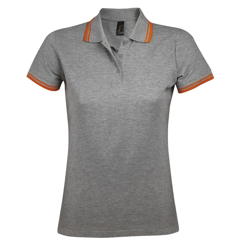 Рубашка поло женская Pasadena Women 200 с контрастной отделкой, серый меланж с оранжевым