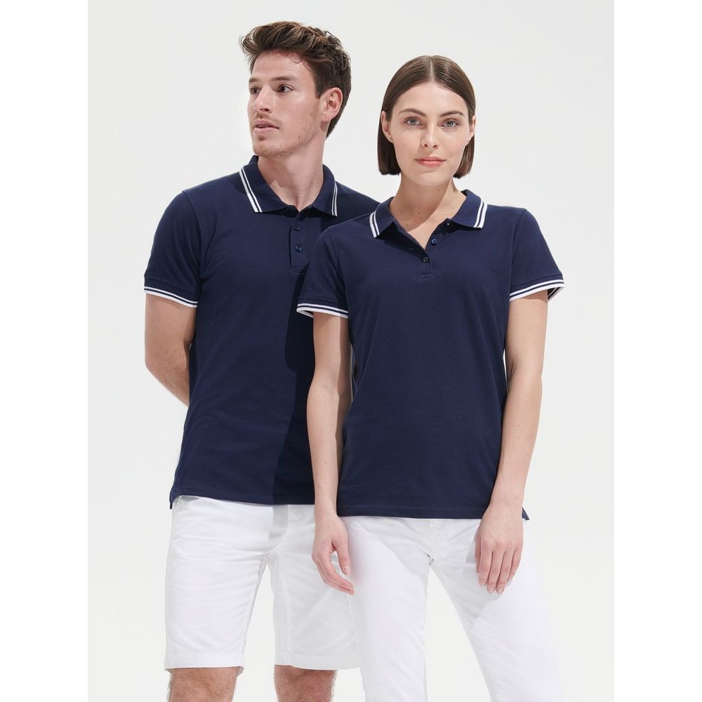 Технические характеристики Рубашка поло женская Pasadena Women 200 с контрастной отделкой, темно-синяя с белым