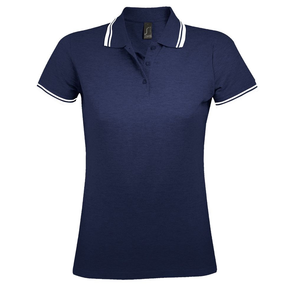 Рубашка поло женская Pasadena Women 200 с контрастной отделкой, темно-синяя с белым