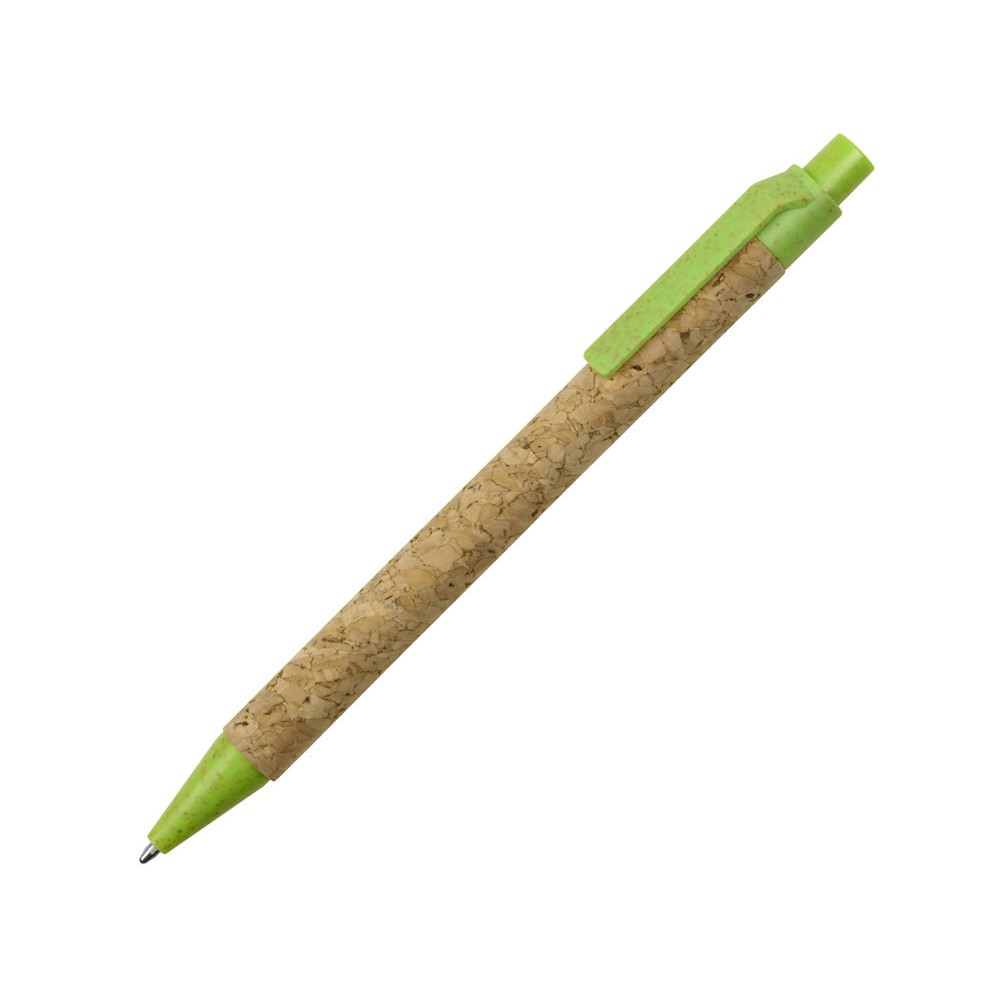 Ручка из пробки и переработанной пшеницы шариковая Evora, пробка/зеленый