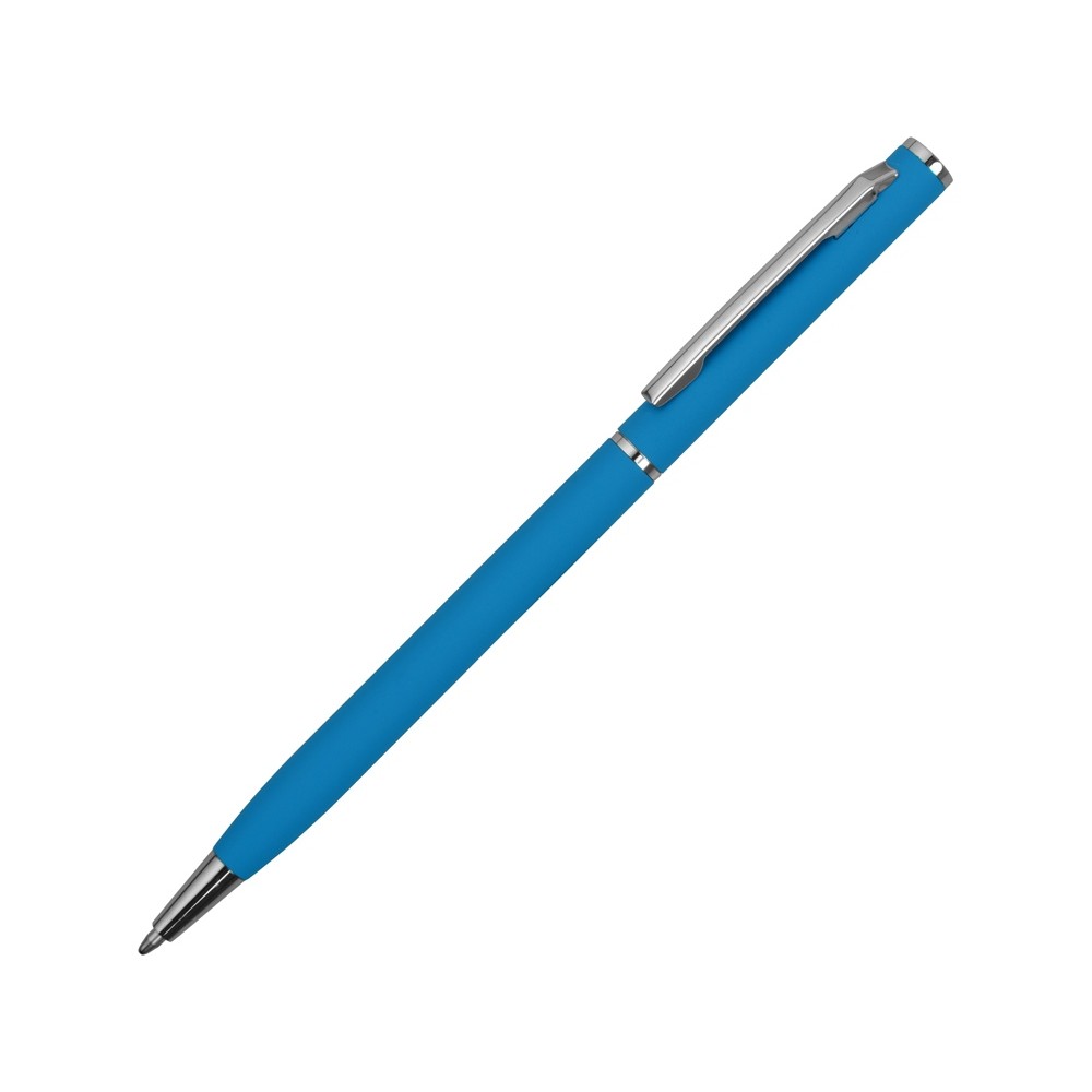 Ручка металлическая шариковая Атриум с покрытием софт-тач, голубой