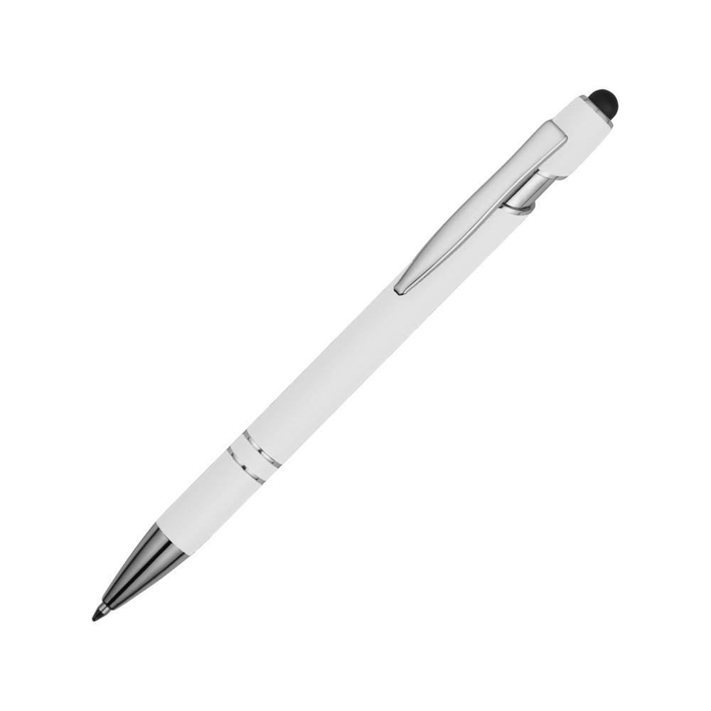Ручка металлическая soft-touch шариковая со стилусом Sway, белый/серебристый